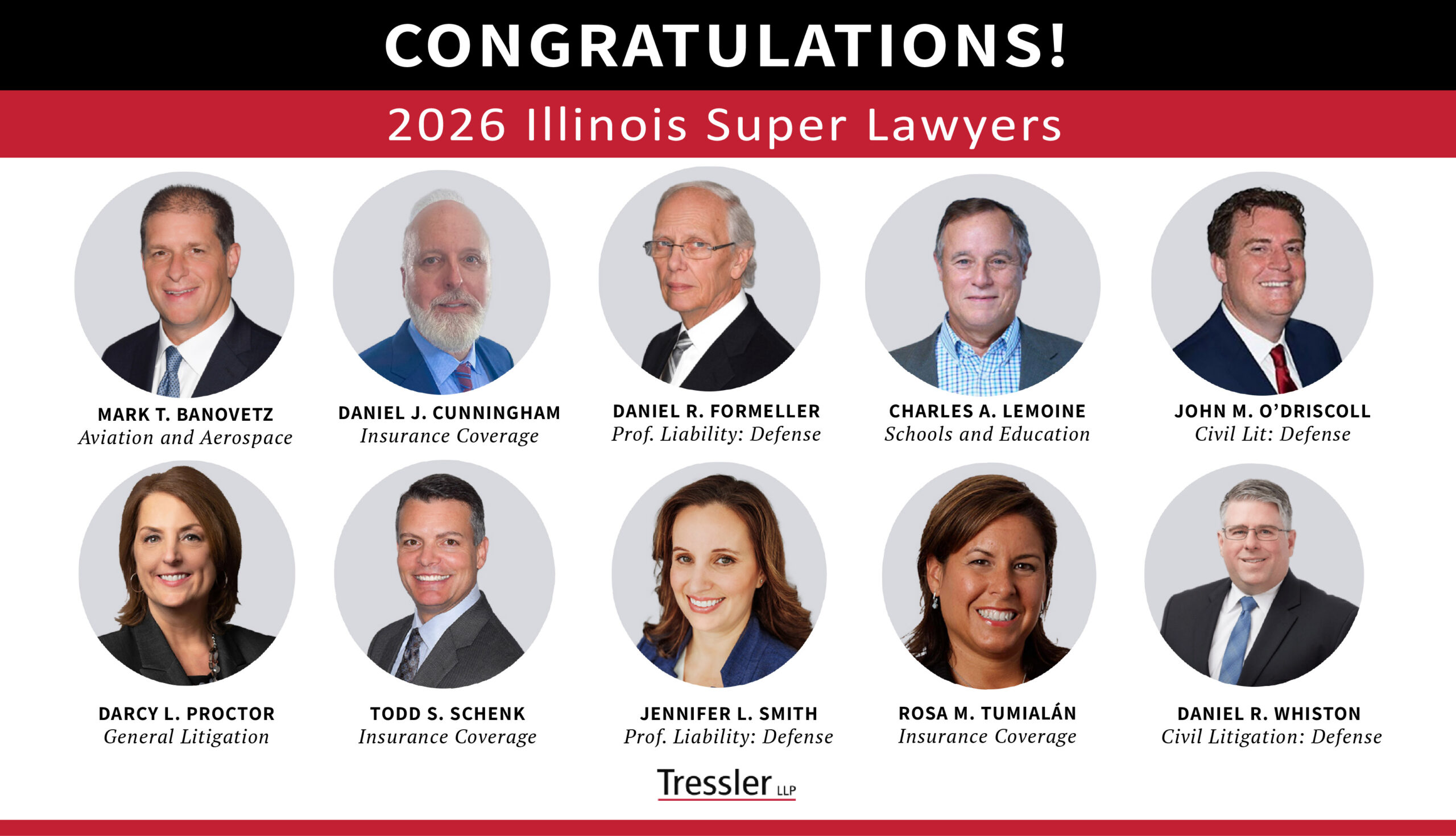 We are proud to announce that 10 Tressler attorneys have been selected as 2026 Illinois Super Lawyers. Super Lawyers uses a patented evaluation process to select the top 5% of attorneys each year. Congratulations, everyone!